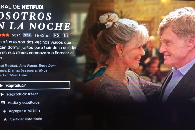 Netflix nuevamente nos sorprende, con esta película: «Nosotros en la noche». Basada en la novela de Kent Haruf, es para verla sentada con pañuelos y ojalá acompañada, para recostarse sobre el hombro, como lo hace Jane Fonda en la camioneta de Redford.